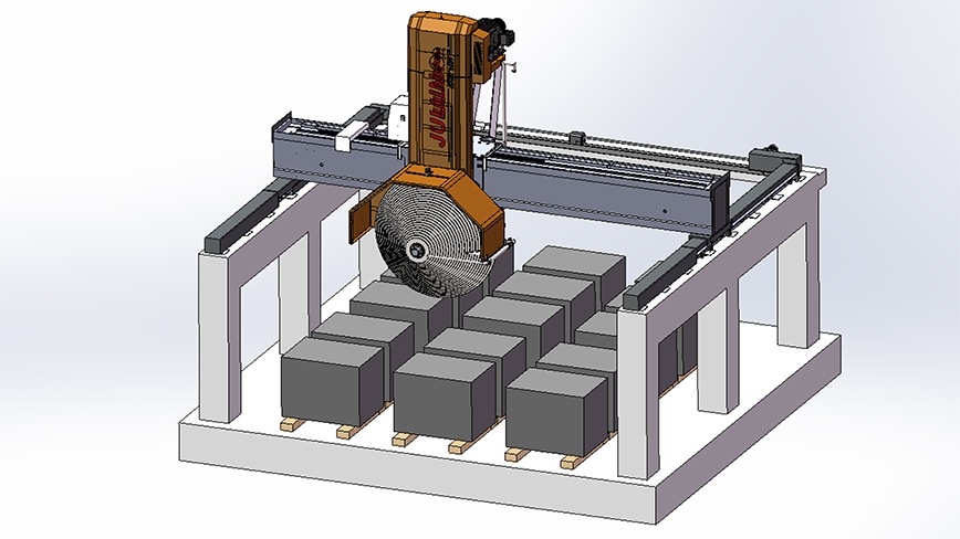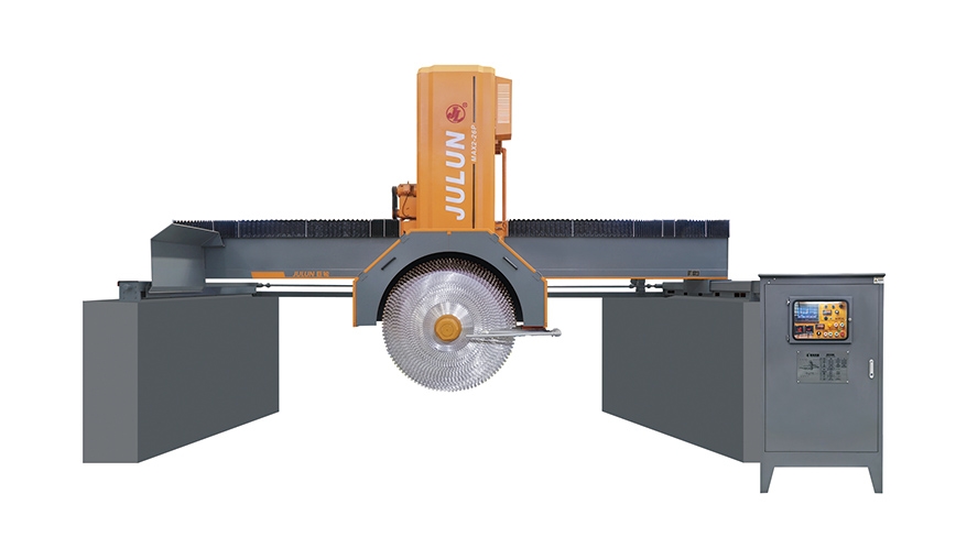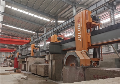 1、全铸件大梁结构,左右走刀采用变频器控制,可根据石材材质进行调速,行走更灵活、切割的板材平整度好。