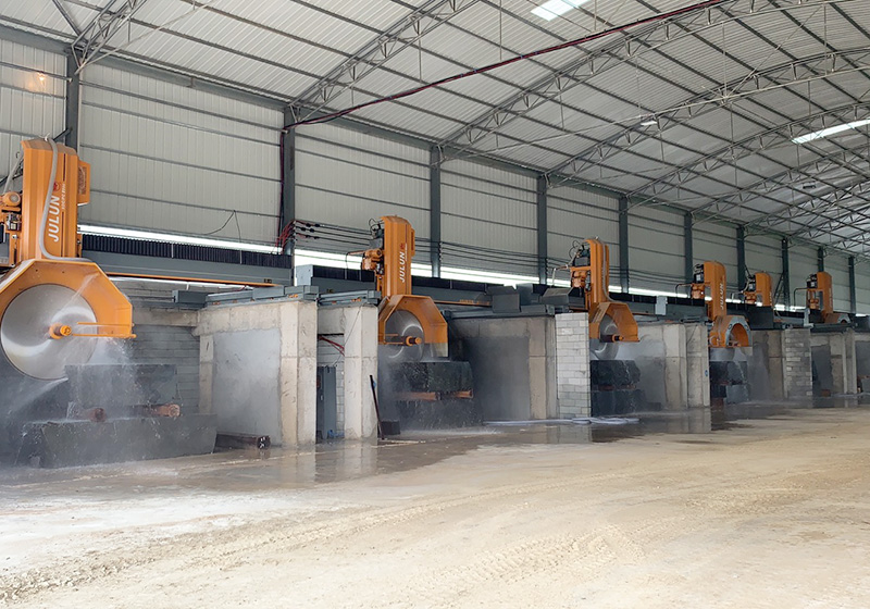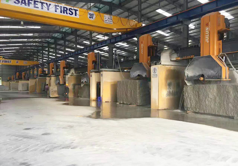 1、全铸件大梁结构,左右走刀采用变频器控制,可根据石材材质进行调速,行走更灵活、切割的板材平整度好。